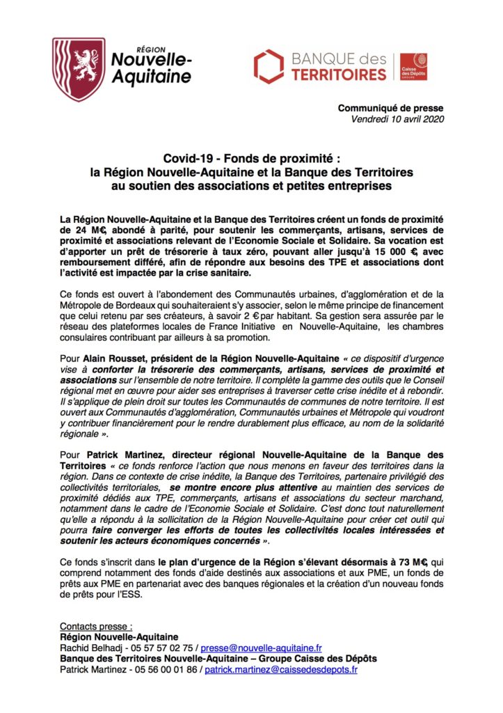 CP-Covid19-FondsSoutien-NouvelleAquitaine-BanqueTerritoires-10042020