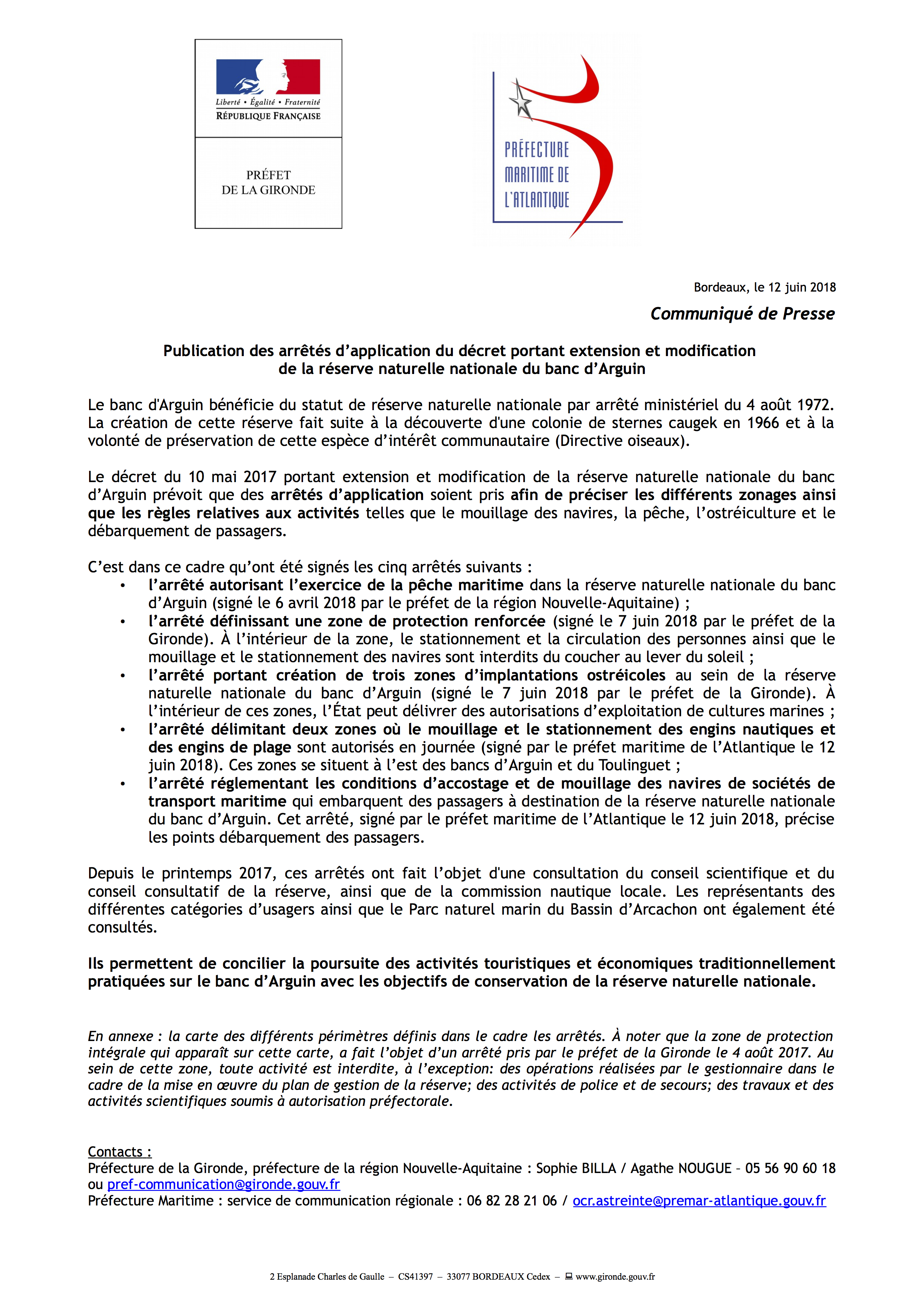 Le préfet maritime a signé les arrêtés en date du 12 juin 2018 (et non du 11 juin) CP en pdf : 2018-06-12-reserve-naturelle-du-banc-darguin