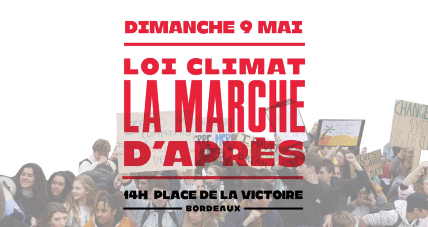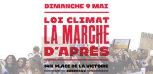 Le dimanche 9 mai, la société civile fera entendre son désaveu quant à la loi « Climat et Résilience » lors de la Marche d’Après à Bordeaux et imaginera avec toutes et tous un avenir juste et soutenable.