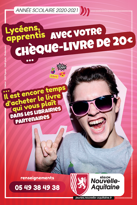 C’est le moment d’utiliser le chèque-livre mis en place par la Région ! Pour la deuxième année consécutive, la Région Nouvelle-Aquitaine propose un chèque-livre de 20 euros à destination des 230 000 lycéens et apprentis. Il leur permet d’acheter les ouvrages de leurs choix dans les 135 librairies partenaires de cette opération. L’objectif ? Leur susciter l’envie de lire la suite