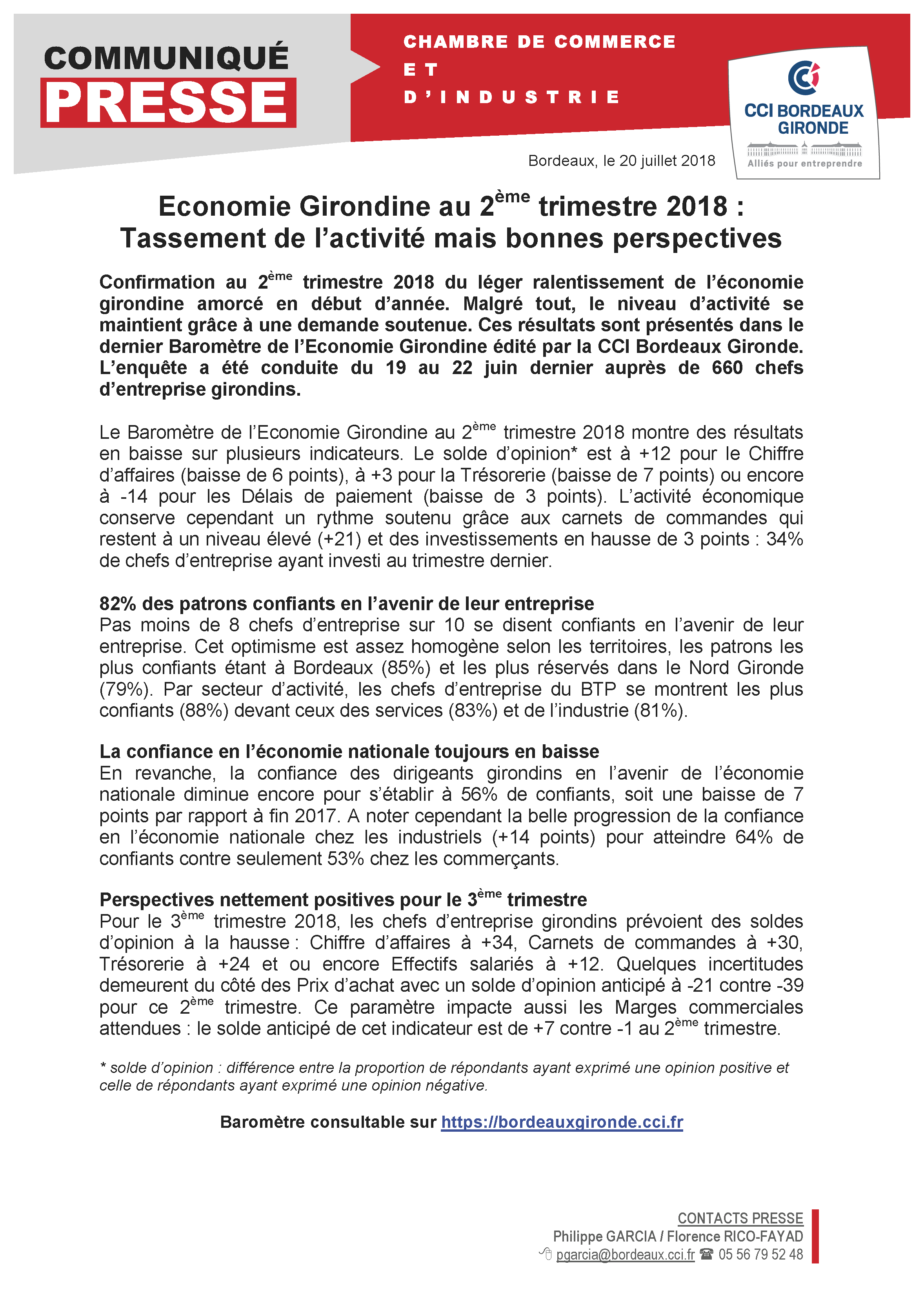 Accueil > Communiqués > Economie Girondine au 2ème trimestre 2018