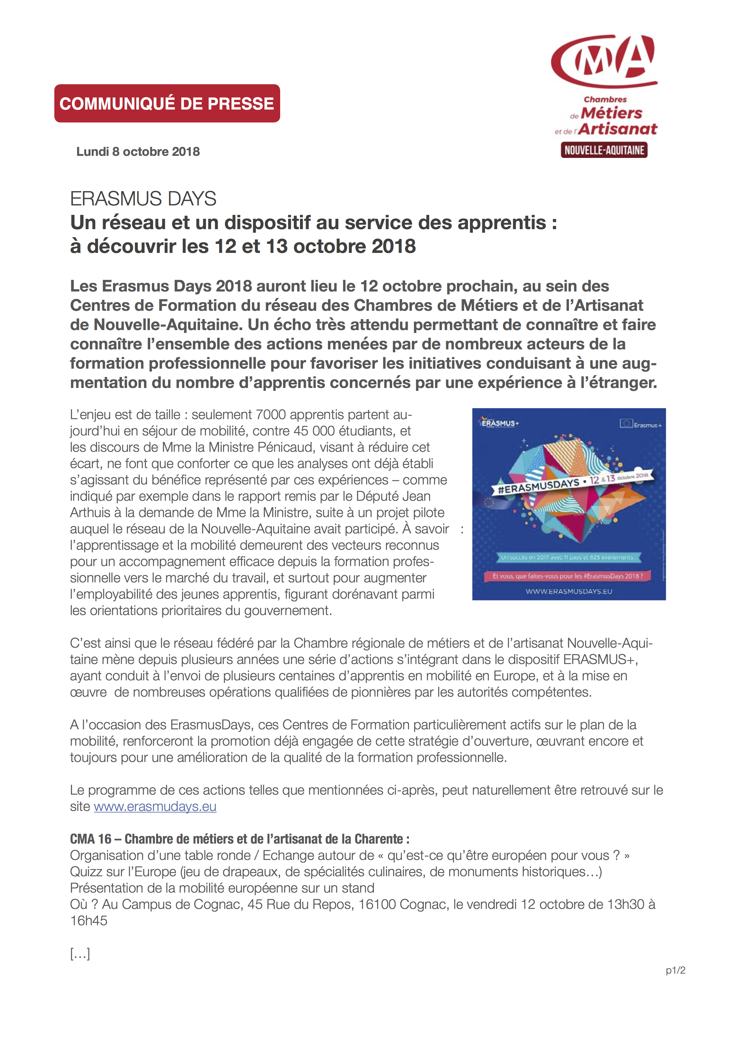 Accueil > Communiqués > Erasmus Days en Nouvelle-Aquitaine 12 & 13 oct