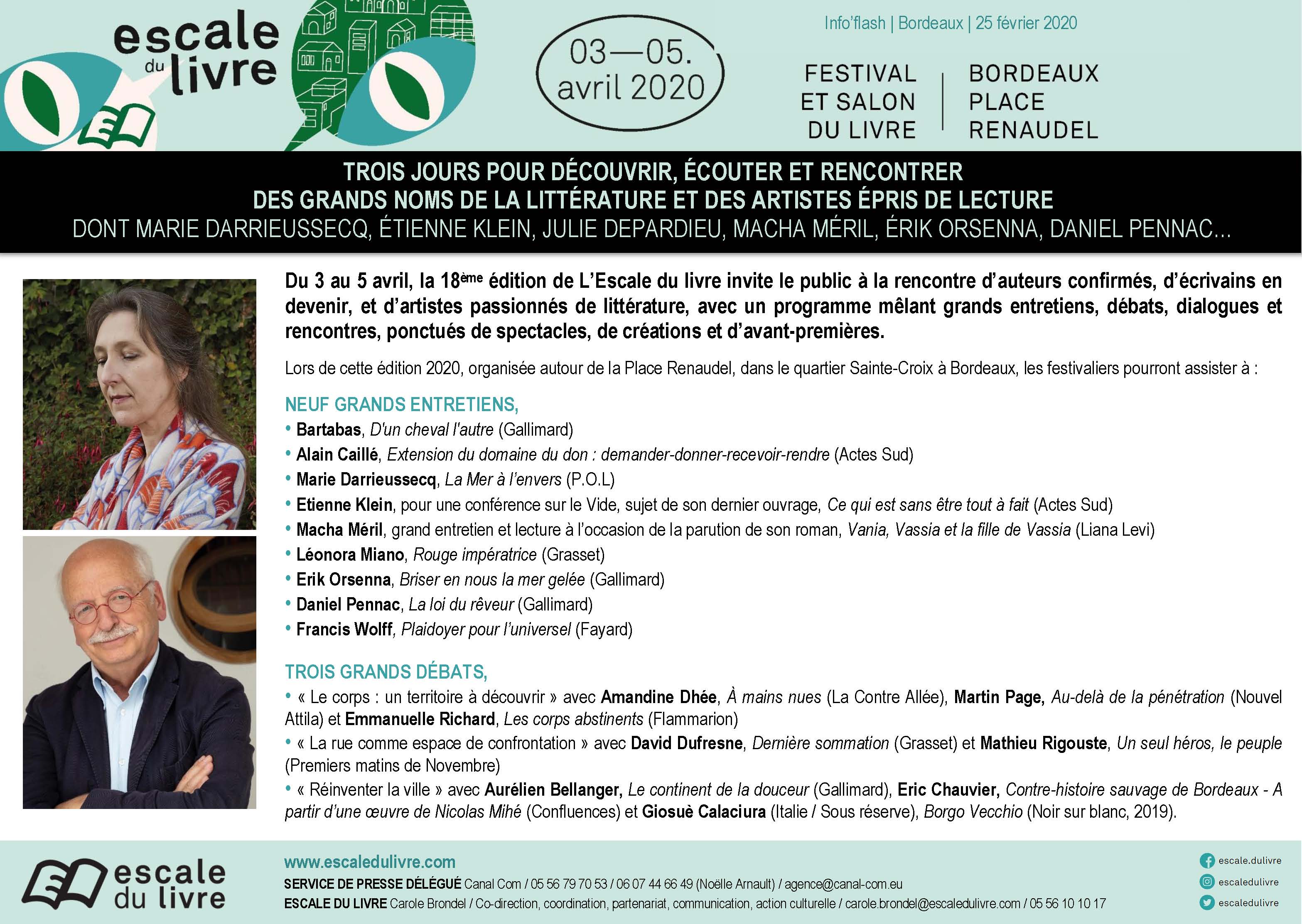DP à télécharger en pdf : PRE-PROG-ESCALE-DU-LIVRE-2020_au_27_fevrier_2020 EDL20-Infoflash-Litterature_generale-Ok