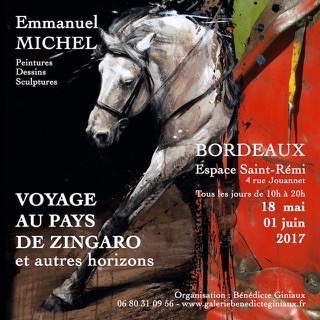 Bonjour, J’ai le plaisir de vous annoncer l’exposition qui sera consacrée du 18 mai au 01 juin 2017 au peintre et sculpteur Emmanuel MICHEL, à Bordeaux. Organisé par la galeriste Bénédicte GINIAUX, l’événement se tiendra à l’Espace Saint-Rémi et réunira un bel ensemble d’œuvres – peintures, sculptures et dessins – de l’artiste voyageur, autour du thème « VOYAGE AU PAYS DE ZINGARO et autres lire la suite