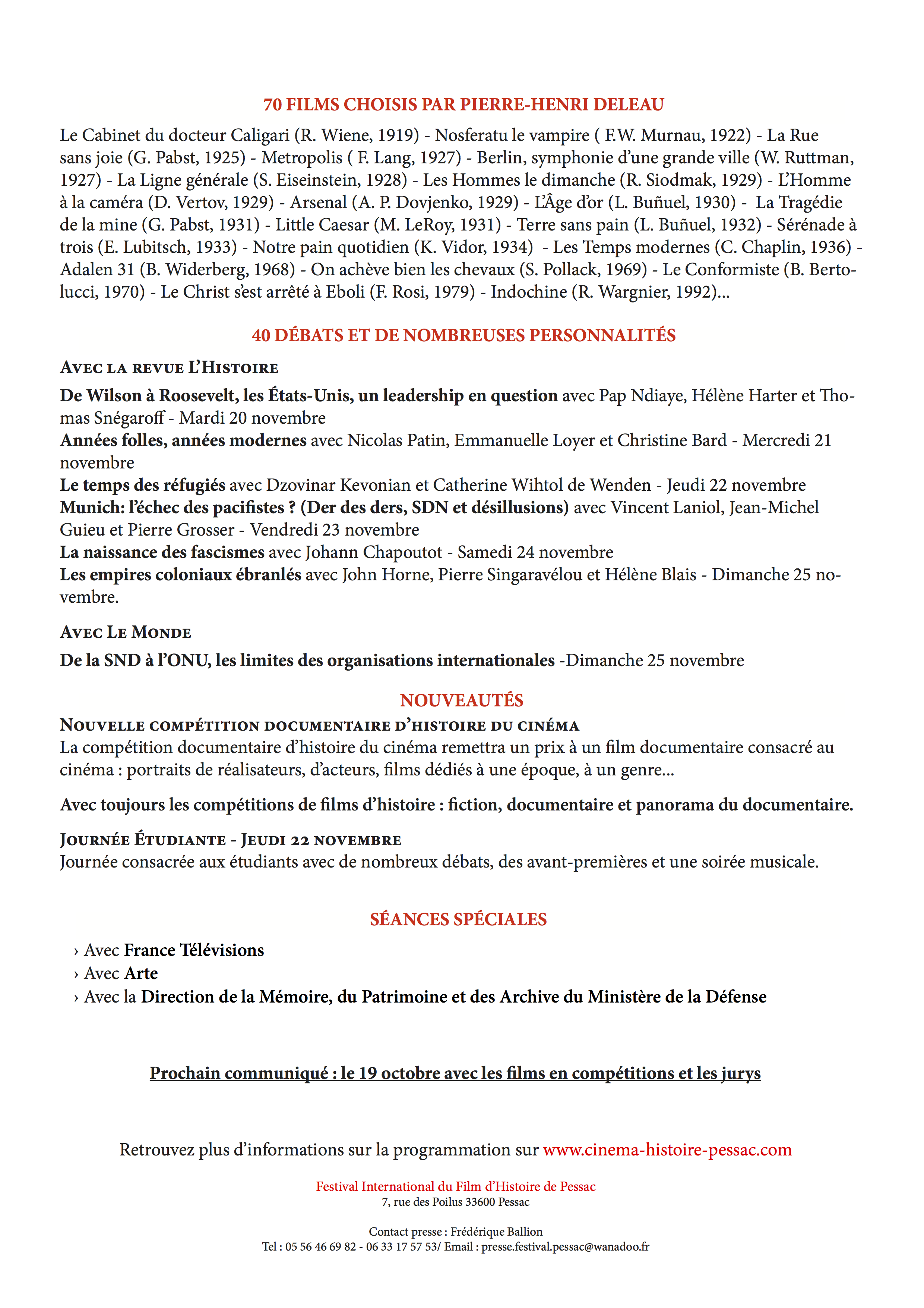 Accueil > Communiqués > Festival International du Film d’Histoire de Pessac 2018