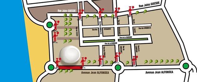 Des points de contrôle avec accès filtrant seront mis en place aux intersections des rues pré-citées, de la rue Jules Guesde et de l’avenue Alfonséa, 2 heures avant le spectacle puis 30 minutes après la fin.