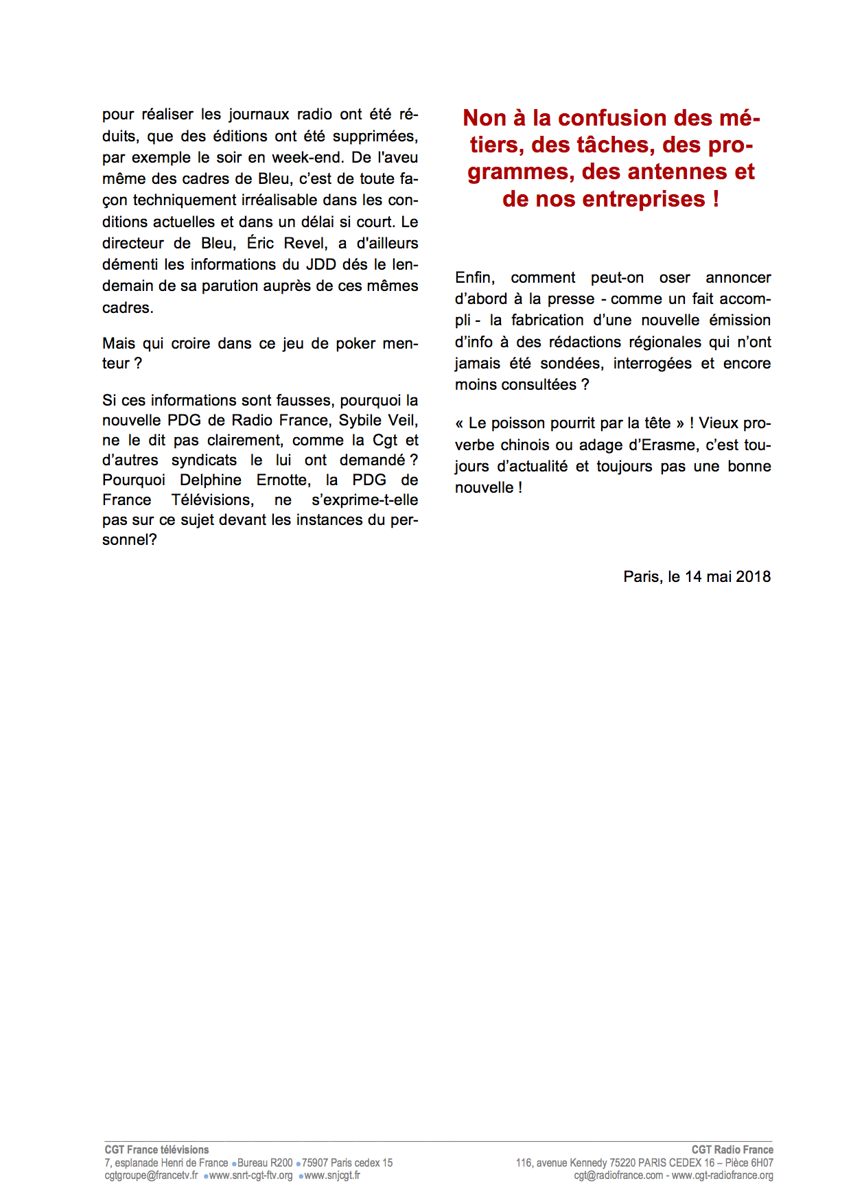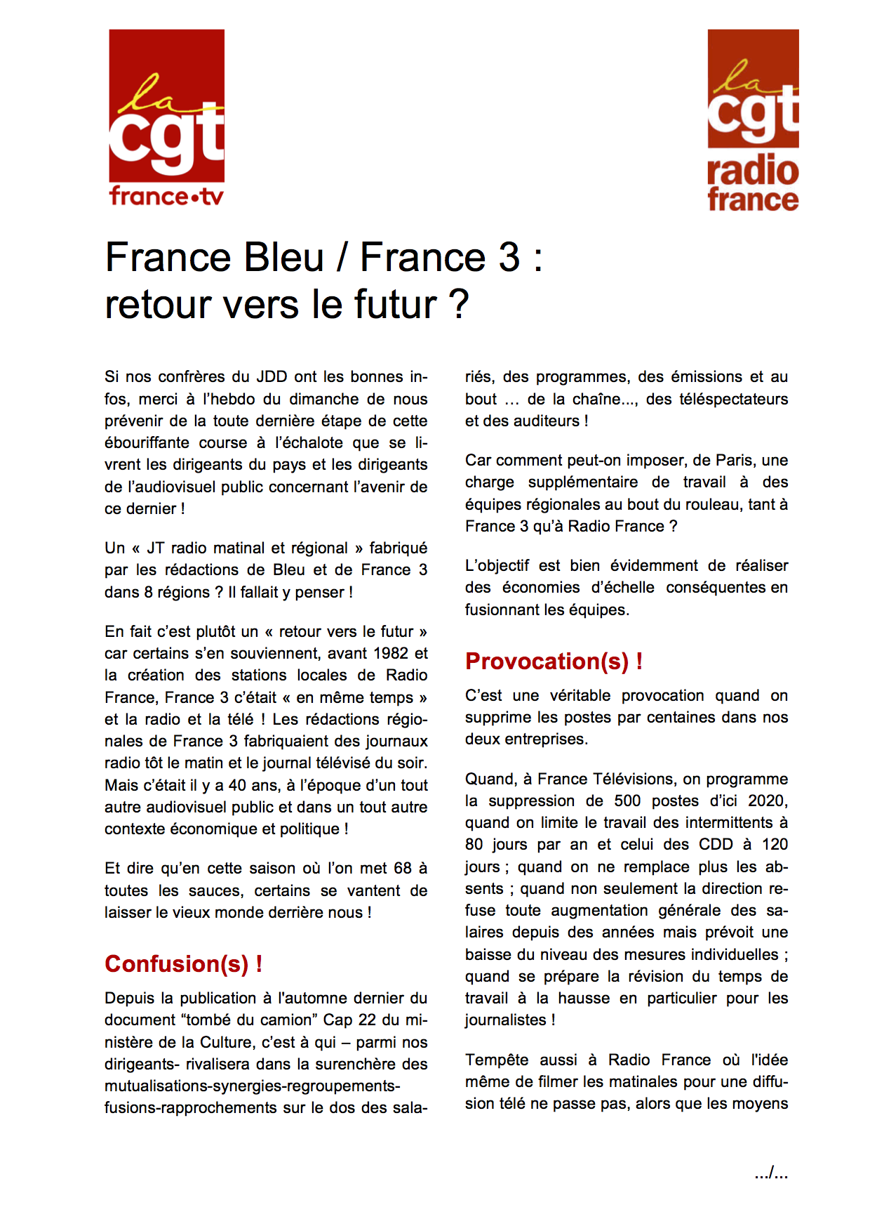Accueil > Communiqués > France Bleu / France 3 : retour vers le futur ?
