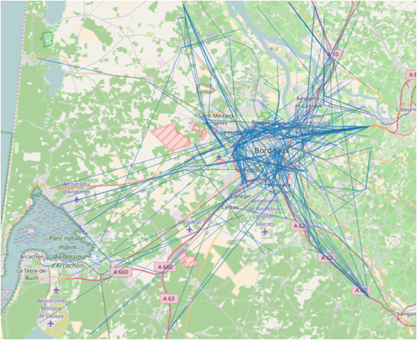 Depuis octobre 2016, le Département de la Gironde a lancé une étude, en partenariat avec IBM et le Groupe PSA pour mieux comprendre les usages de la route en Gironde grâce aux capteurs connectés embarqués dans certains véhicules Citroën, Peugeot et DS. Pendant 13 mois, ce sont plus de 3000 voitures qui sont observées en Gironde. Les données collectées sont anonymes, on ne peut pas faire de lien entre les trajets réalisés et la carte grise du conducteur. Elles sont traduites en infographies par IBM puis analysées par le Département.
