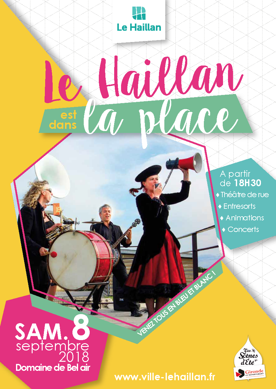 Le Haillan est dans la place c’est le rendez-vous incontournable de la rentrée au Haillan ! : du théâtre de rue, des entresorts, des concerts, des animations, des stands de restauration… Un rendez-vous festif, convivial et gratuit pour toute la famille ! En soirée et en plein air dans le cadre verdoyant du Bois de Bel Air.