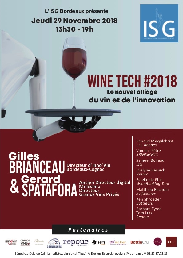 Le Jeudi 29 Novembre prochain, l’ISG Bordeaux est heureuse de vous convier à son édition Wine Tech #2018 sur la complémentarité entre le secteur viti-vinicole et les nouvelles technologies.