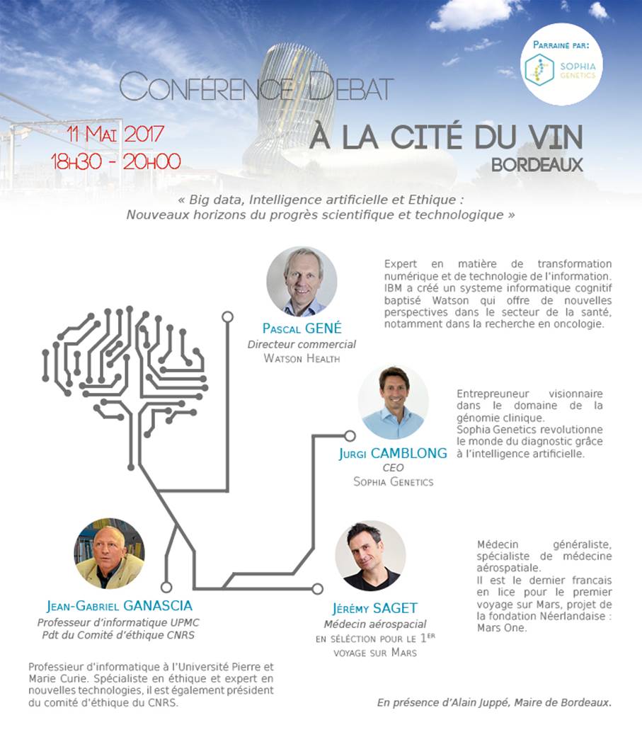 Bonjour, La plateforme nationale de soutien à l’innovation en cancérologie MATWIN (basée à Bordeaux, filiale d’Unicancer) organise le 11 mai 2017 de 18h30 à 20h, à la Cité du Vin à Bordeaux une conférence-débat en présence d’un panel de leaders d’opinion pour nourrir la discussion autour des questions du « Big data, Intelligence artificielle et lire la suite
