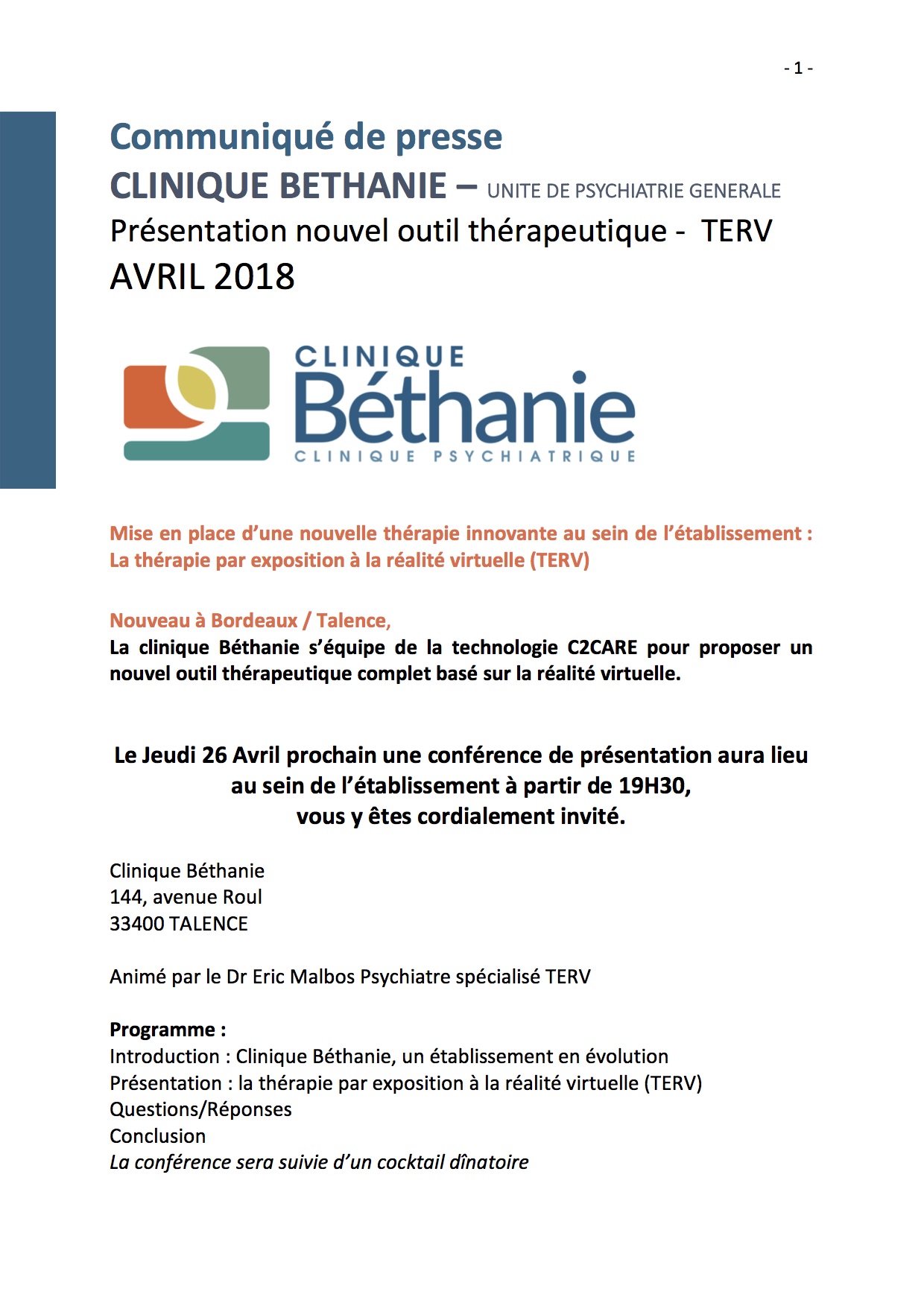 Accueil > Communiqués > Invitation Présentation innovation Santé Clinique Béthanie