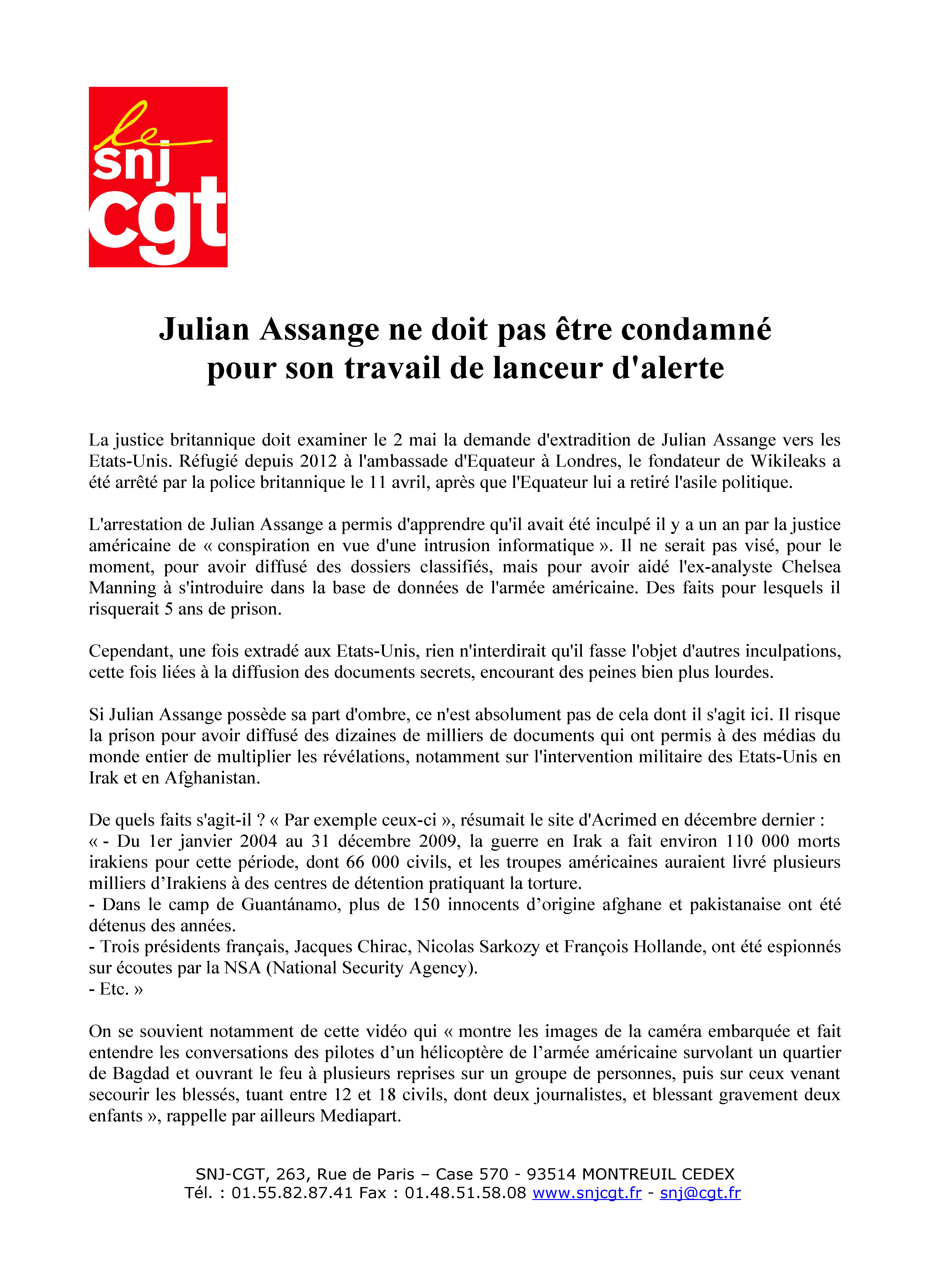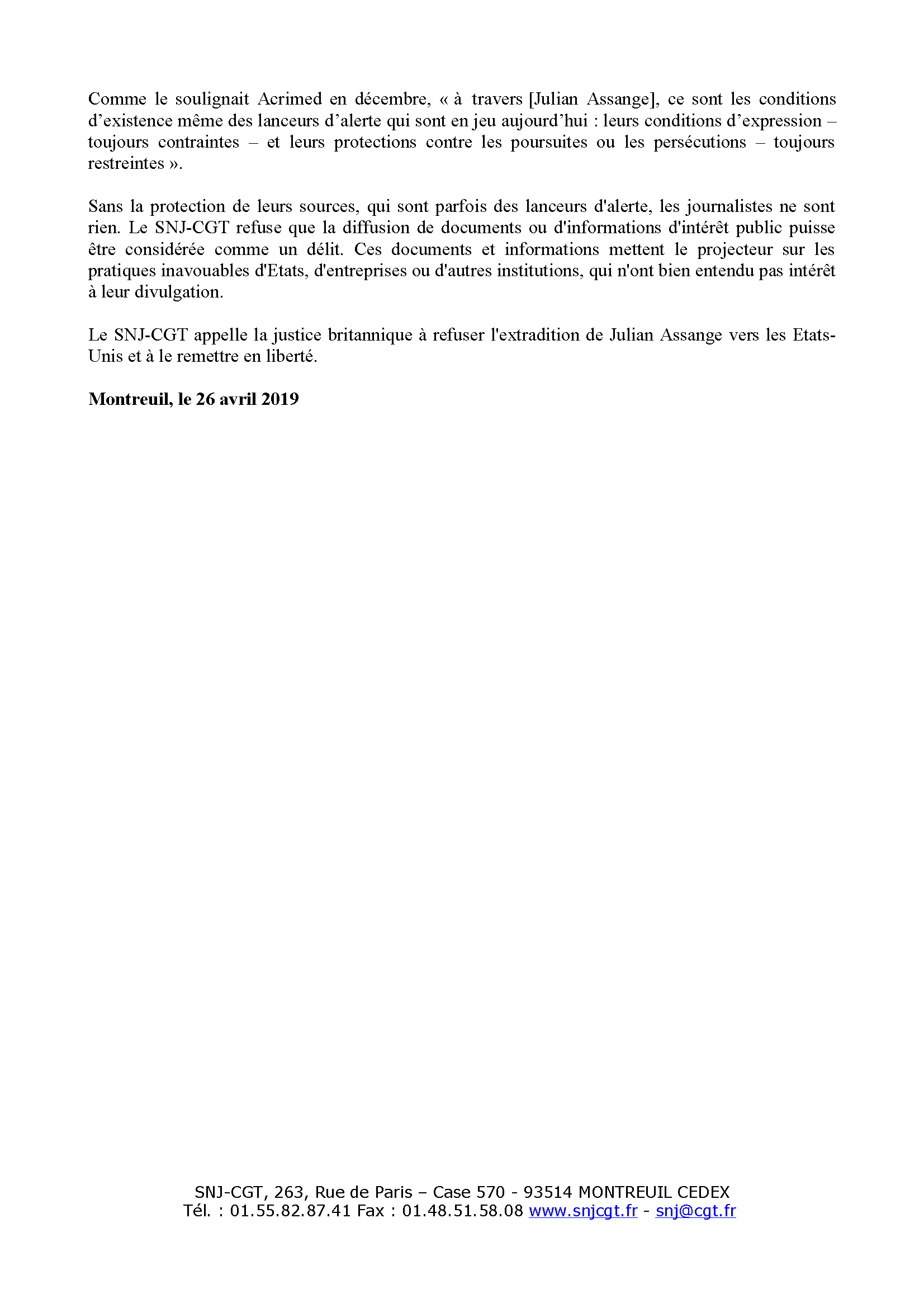 CP en pdf : snj-cgt-julian-assange-26-avril-2019