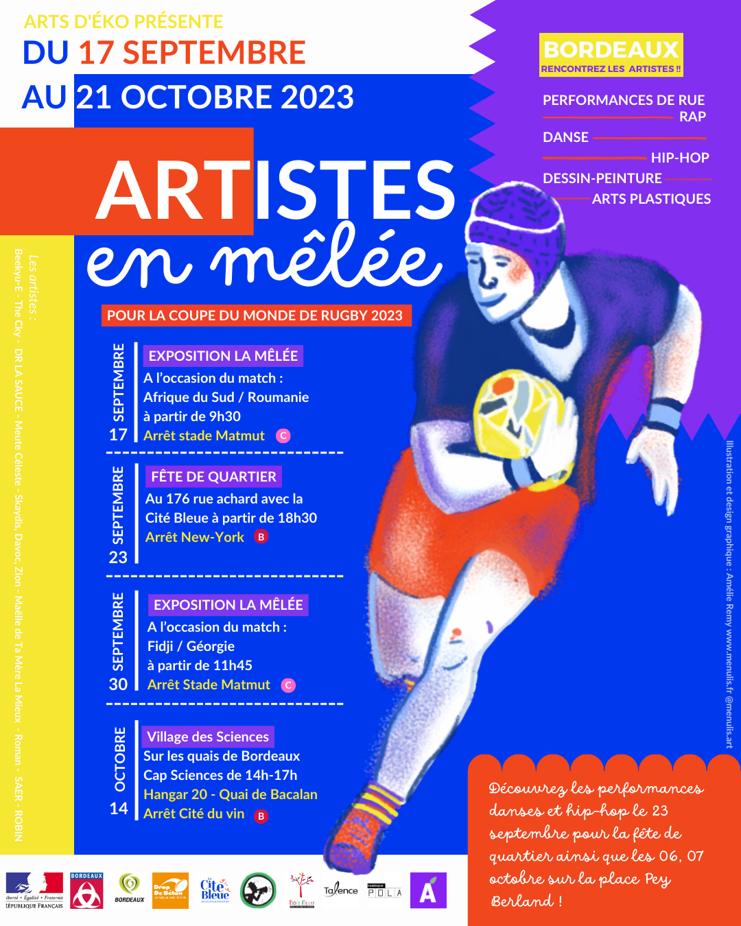 La Mêlée" : Une Création Artistique Inter Quartiers de Bordeaux Métropole à partir d'Équipements de Rugby Usagés des Clubs Métropolitains.