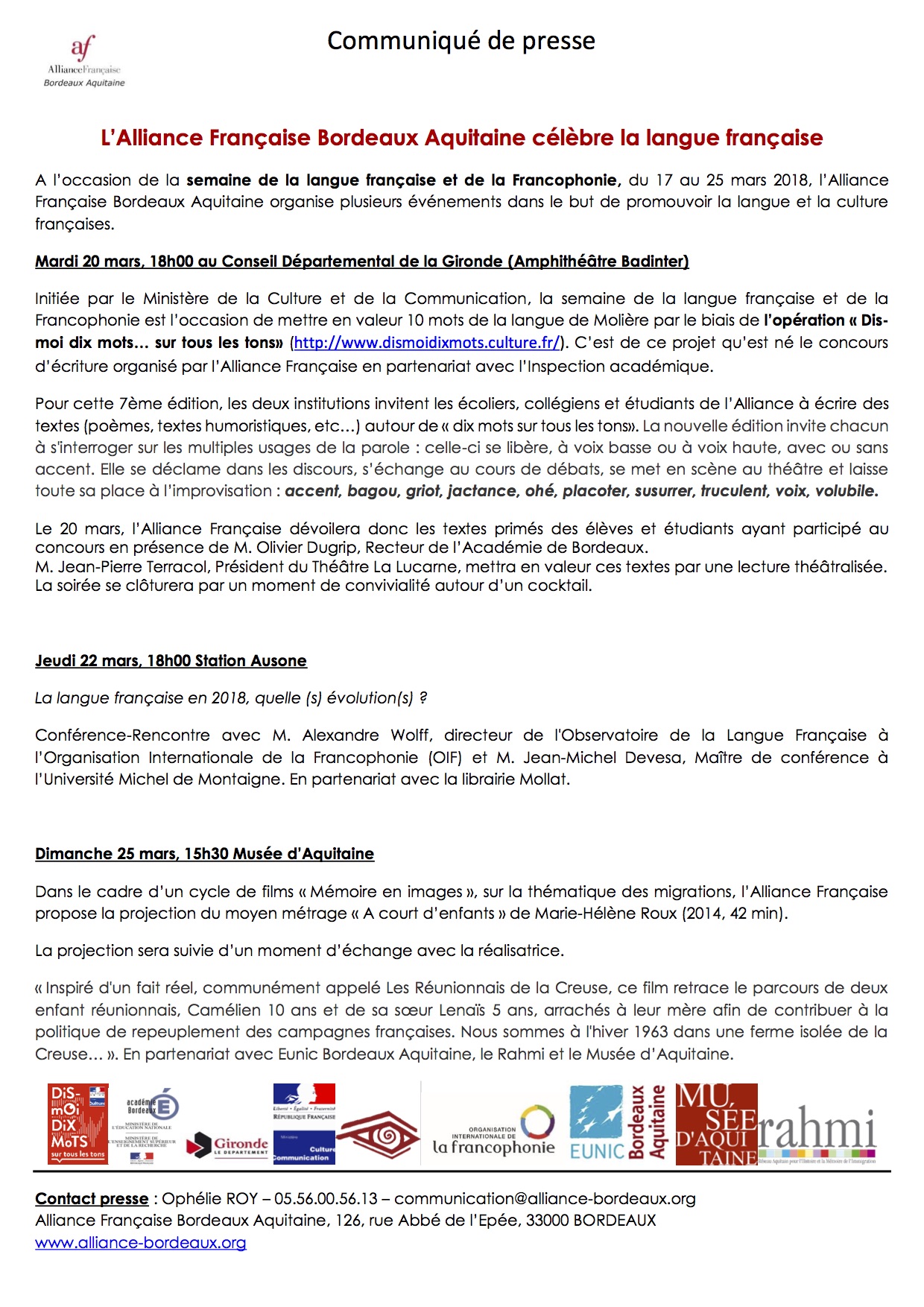 Accueil > Communiqués > L’Alliance Française Bordeaux Aquitaine célèbre la langue française