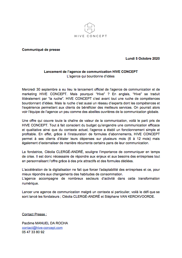 Communiqué de presse (pdf) : CP-LANCEMENT-HIVECONCEPT