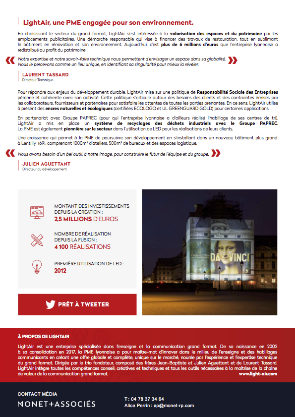 Vous trouverez davantage d’informations sur l’actualité de LightAir dans le communiqué de presse et dans le dossier de case studies de la PME.