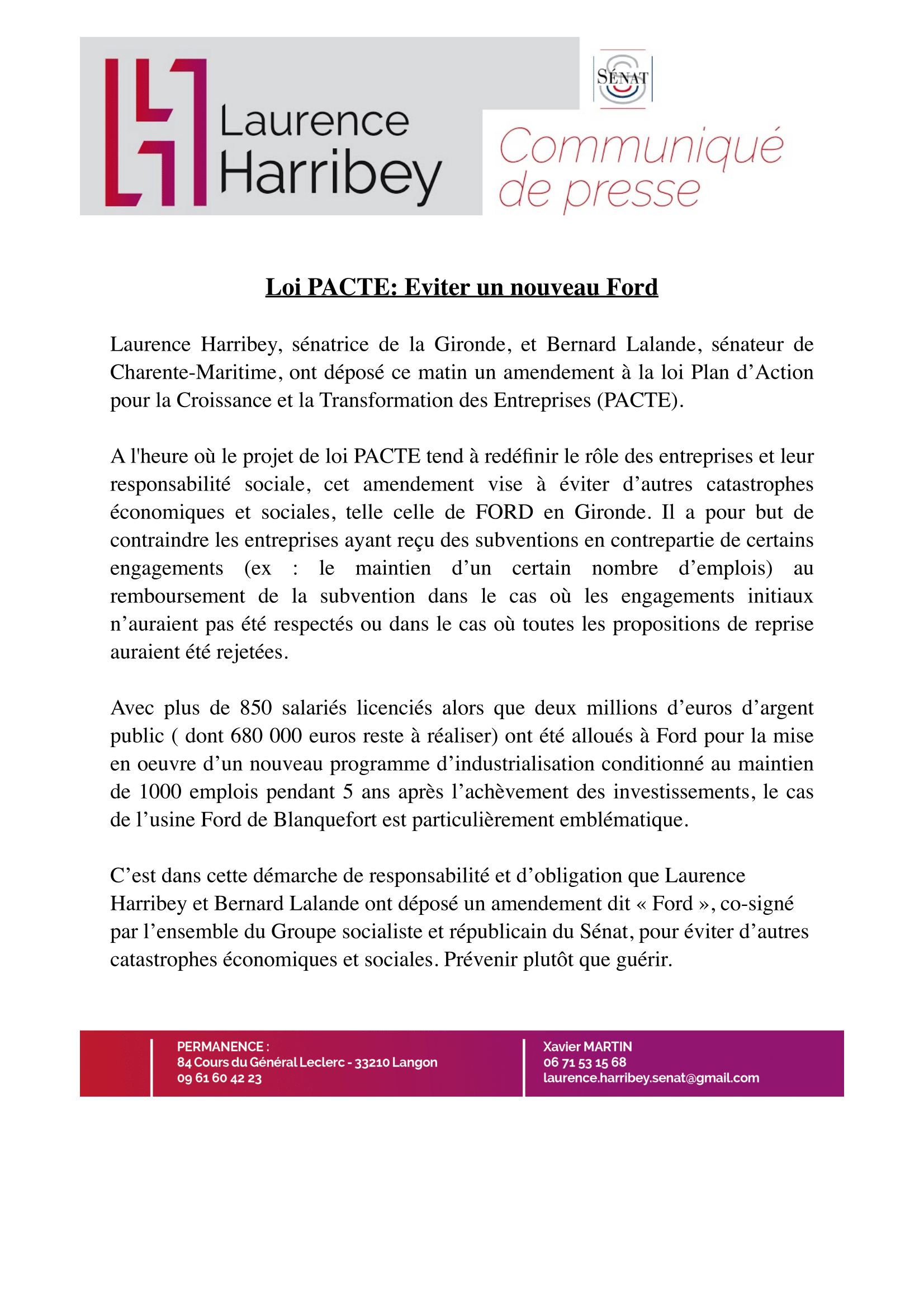 Accueil > Communiqués > Loi PACTE: Eviter un nouveau ford