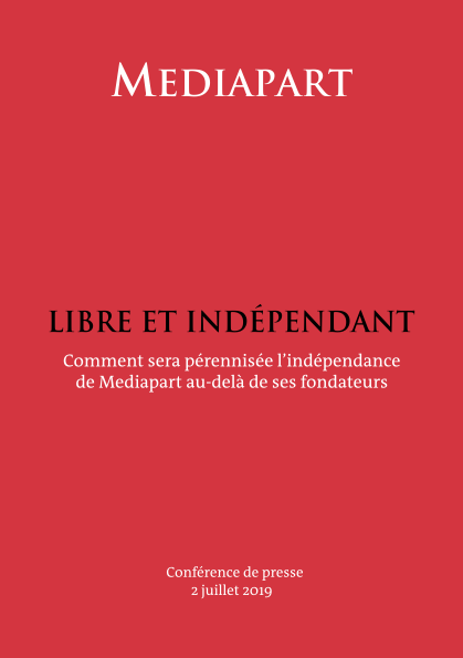 Dossier de presse complet (pdf) ici : perenniser_lindependance_mediapart Article publié sur le site de Mediapart (pdf) ici : article_815795