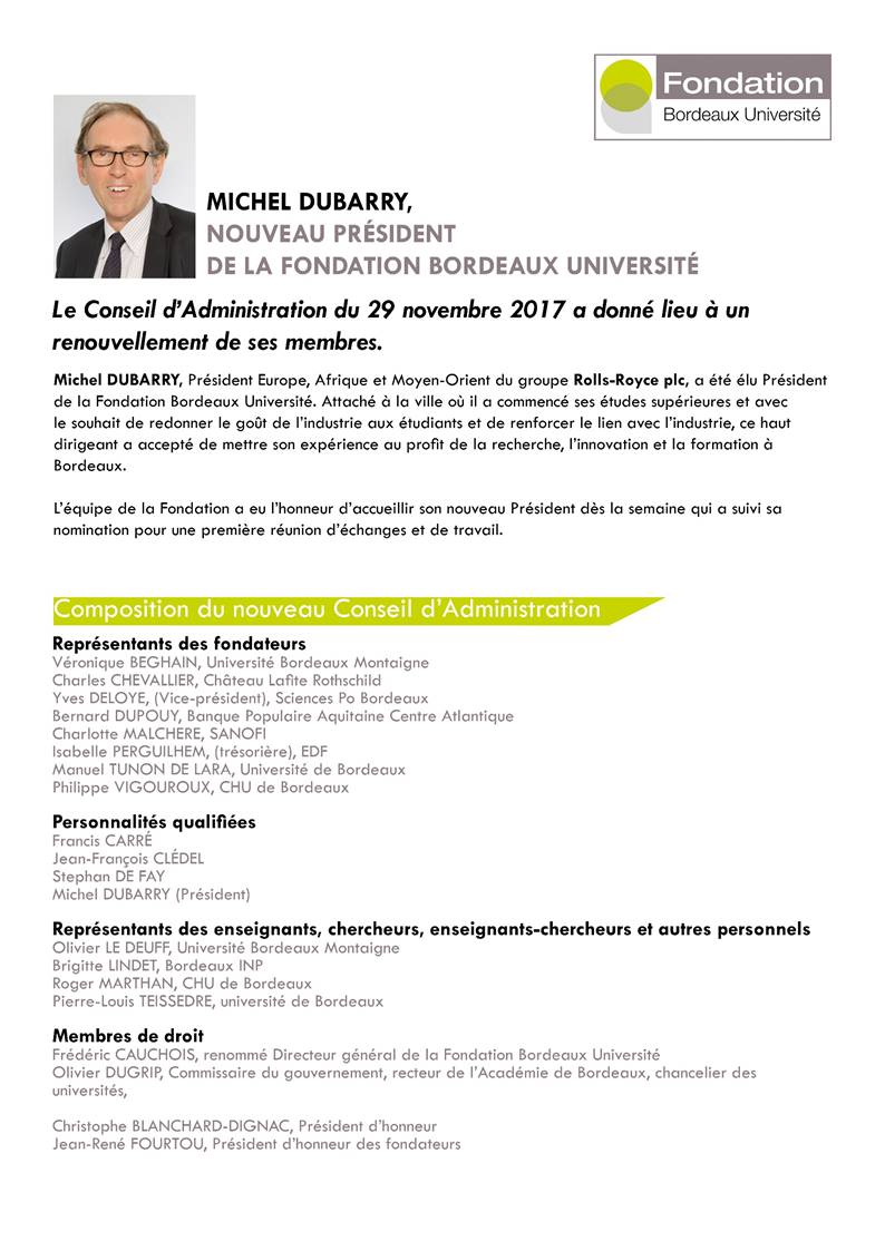 Accueil > Communiqués > Michel DUBARRY, Nouveau Président de la Fondation Bordeaux Université