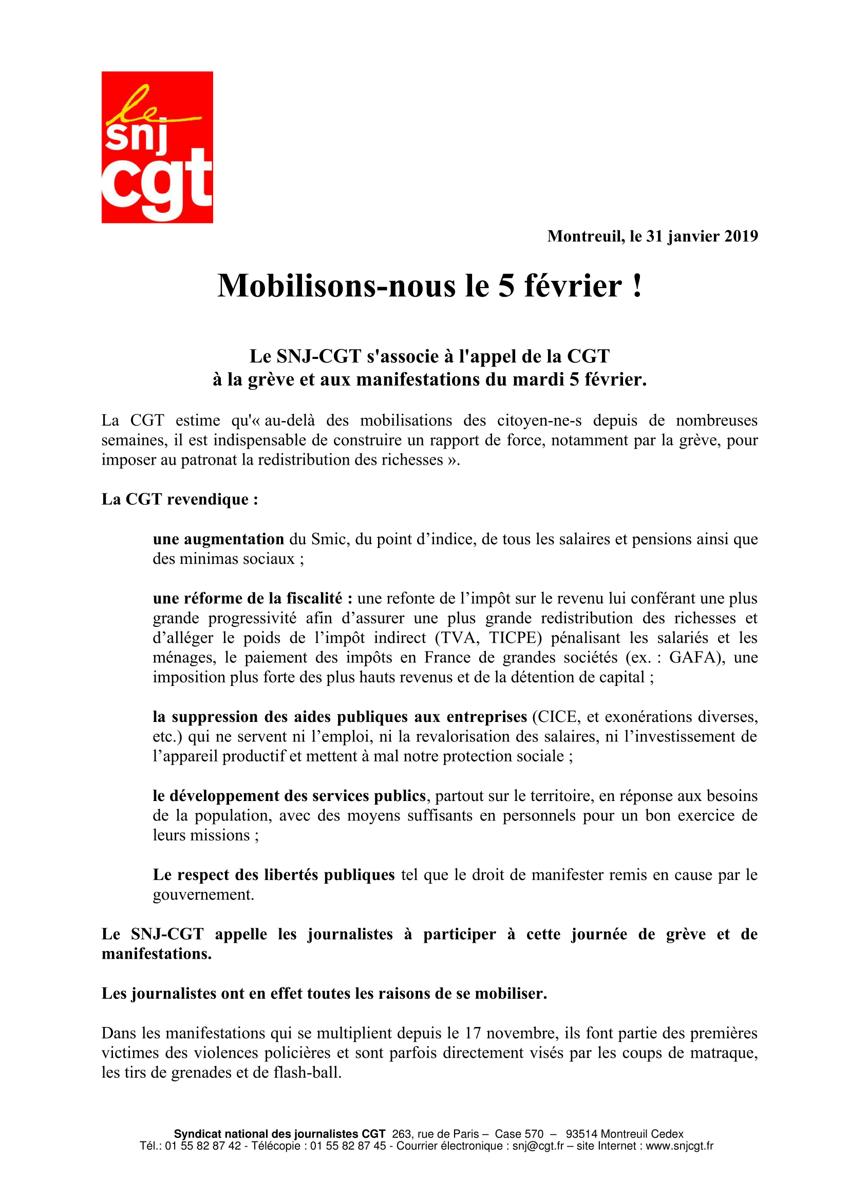 Communiqué en PDF : snj-cgt-appel-5-fevrier-2019