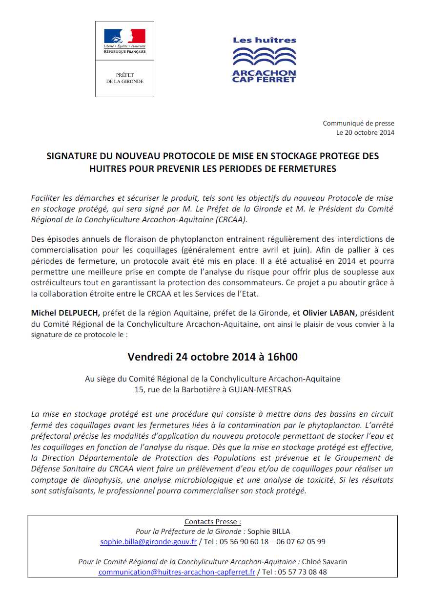 Accueil > Communiqués > Nouveau protocole de stockage des huitres pour prévenir les périodes de fermeture