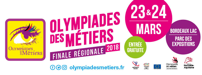 La finale régionale des 45èmes Olympiades des Métiers se déroulera sur site unique au Parc des Expositions de Bordeaux-Lac les vendredi 23 et samedi 24 mars 2018.