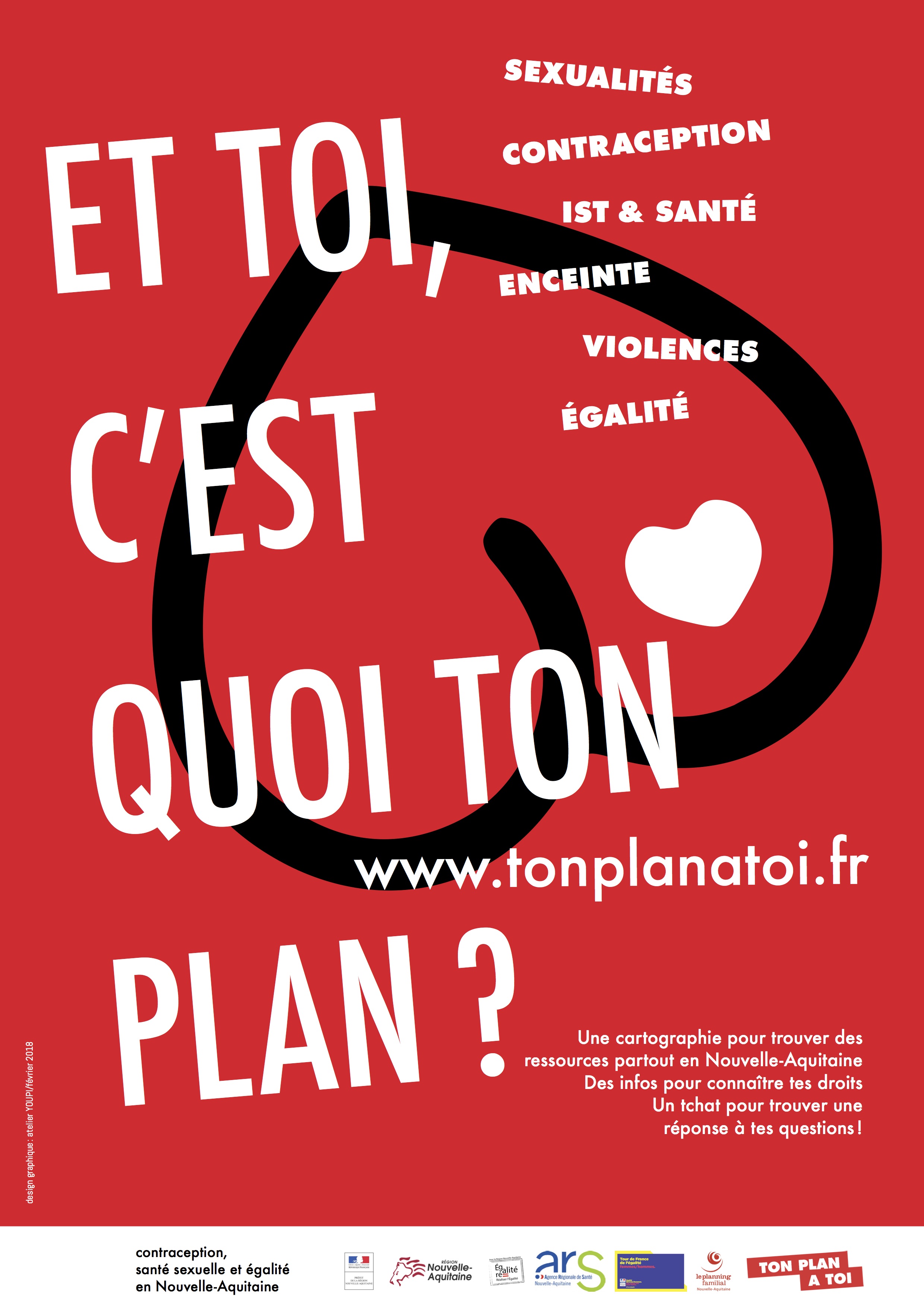 Contraceptions, homophobie, boutons qui grattent, capote qui pète… c’est pour répondre à ces questions urgentes et ces besoins pressants que le site internet « Ton Plan à Toi » http://tonplanatoi.fr/ a été créé par la Région Nouvelle-Aquitaine, l’Agence Régionale de Santé et la Direction Régionale aux Droits des Femmes et à l’Egalité, en collaboration avec la Fédération Régionale du Mouvement français pour le Planning Familial.