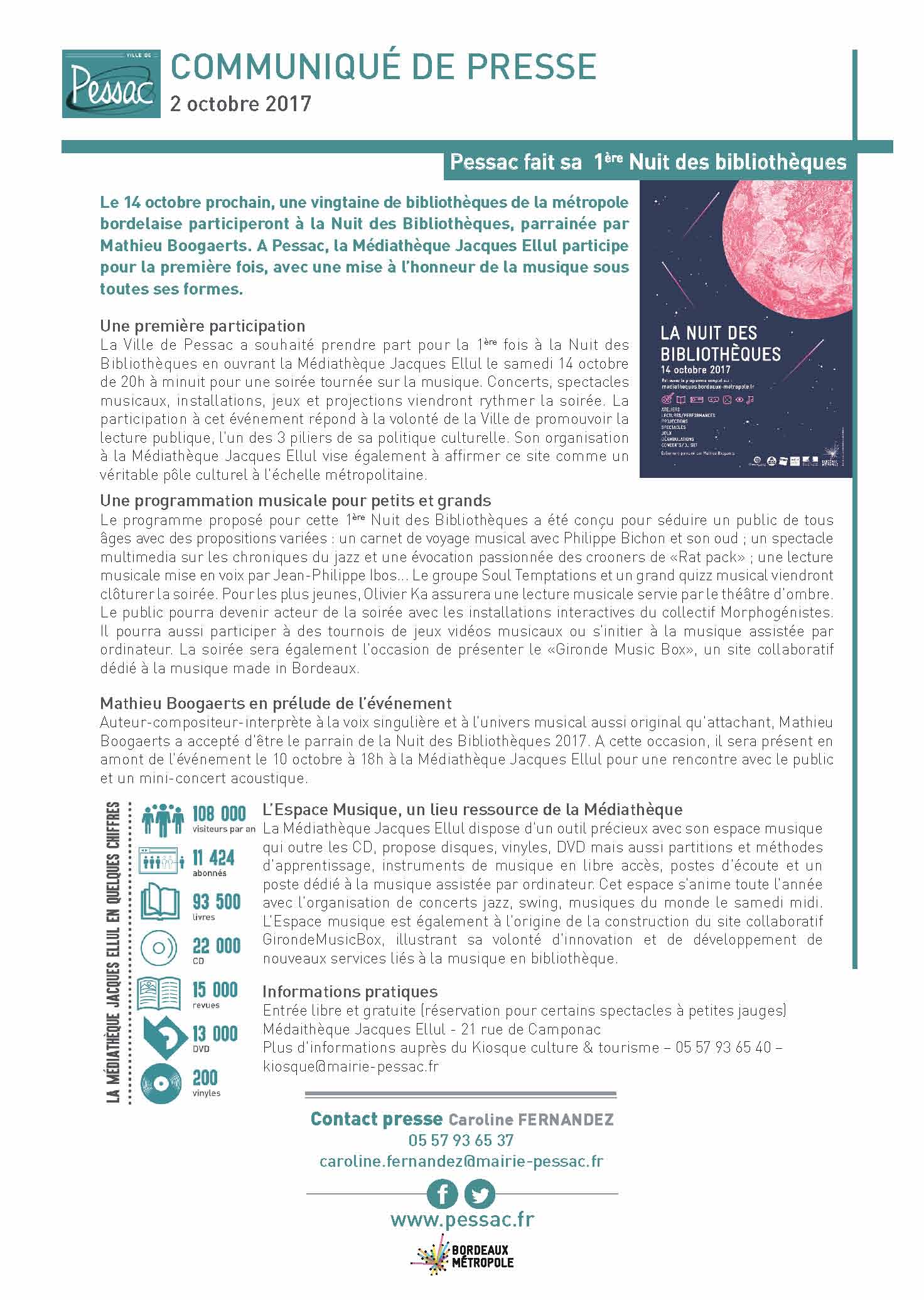 Accueil > Communiqués > Première Nuit des Bibliothèques à Pessac