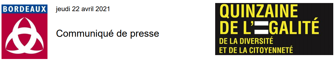 La Ville de Bordeaux est engagée dans la prévention et la lutte contre les discriminations. Organisée du 2 au 16 novembre 2021, la Quinzaine de l’égalité, de la diversité et de la citoyenneté 8 ème édition, permettra une nouvelle fois de valoriser le travail déployé par l’ensemble des acteurs associatifs en matière de lutte contre toutes les discriminations, de promotion de l’égalité et de la diversité. Les associations sont invitées à participer via un appel à projets (dépôt des dossiers avant le 9 juin).