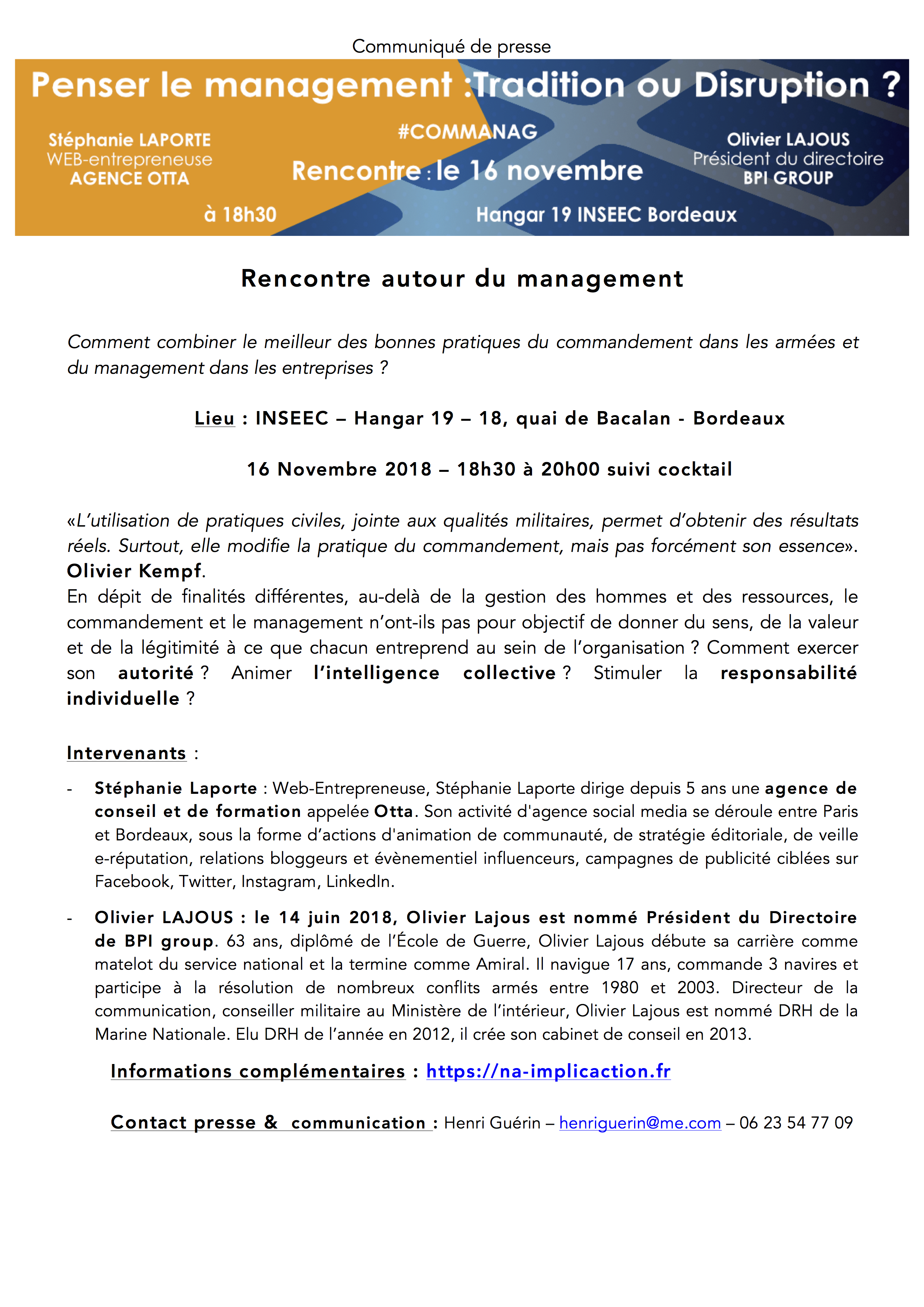 Accueil > Communiqués > Rencontre autour du management : Tradition ou Disruption