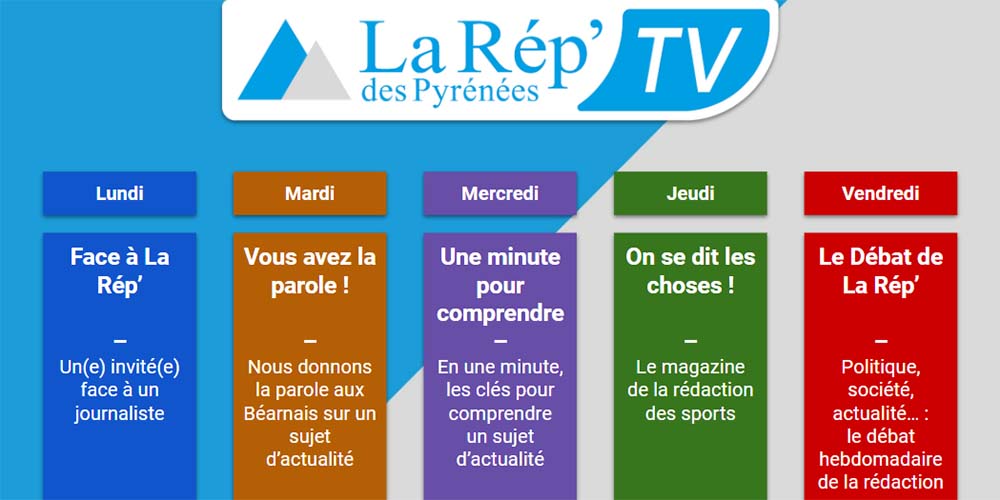 Jeudi 7 avril, La République des Pyrénées lance La Rép’ des Pyrénées TV, la web TV locale du Béarn et de la Soule, dont les programmes hebdomadaires originaux et interactifs viennent enrichir et diversifier ses formats et contenus.