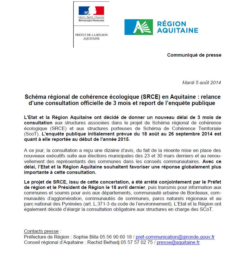 Accueil > Communiqués > Schéma régional de cohérence écologique:enquête publique reportée à 2015
