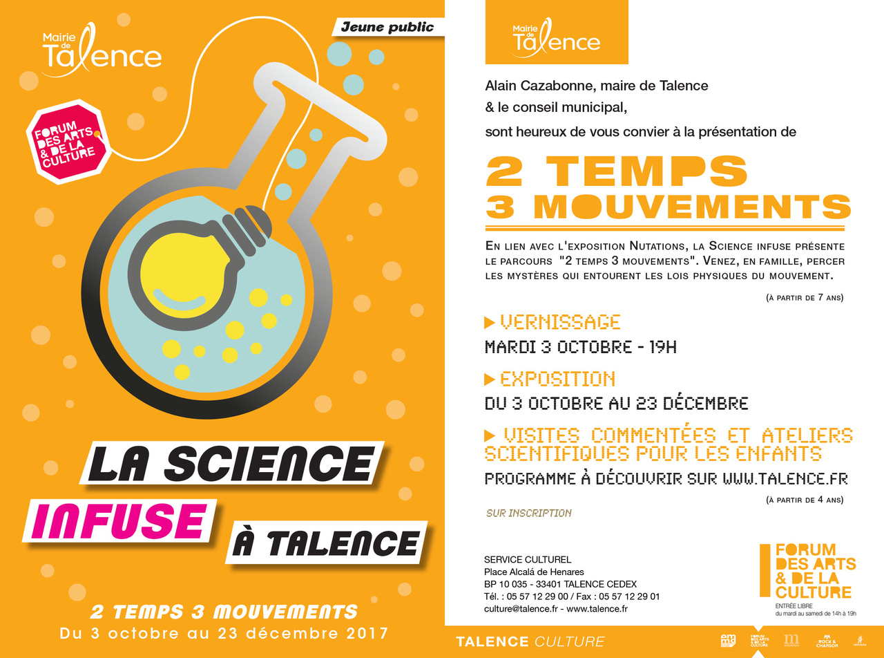 La science infuse propose du 3 octobre au 23 décembre, l’exposition « 2 temps 3 mouvement », au 3ème étage du Forum des Arts& de la Culture.
