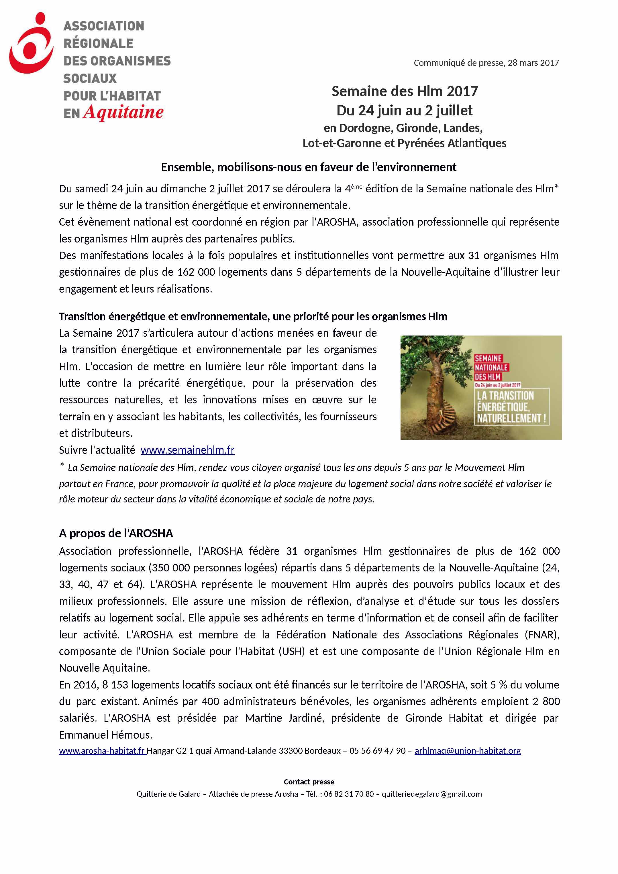 Dans 5 départements de la Nouvelle-Aquitaine, la Semaine des Hlm est coordonnée par l’AROSHA. Association professionnelle, l’AROSHA fédère 31 organismes gestionnaires de plus de 162 000 logements sociaux (350 000 personnes logées) répartis dans 5 départements (Dordogne, Gironde, Landes, Lot-et-Garonne et Pyrénées Atlantiques) qui emploient 2800 collaborateurs. En 2016, 8153 logements locatifs sociaux ont été financés sur ce territoire.