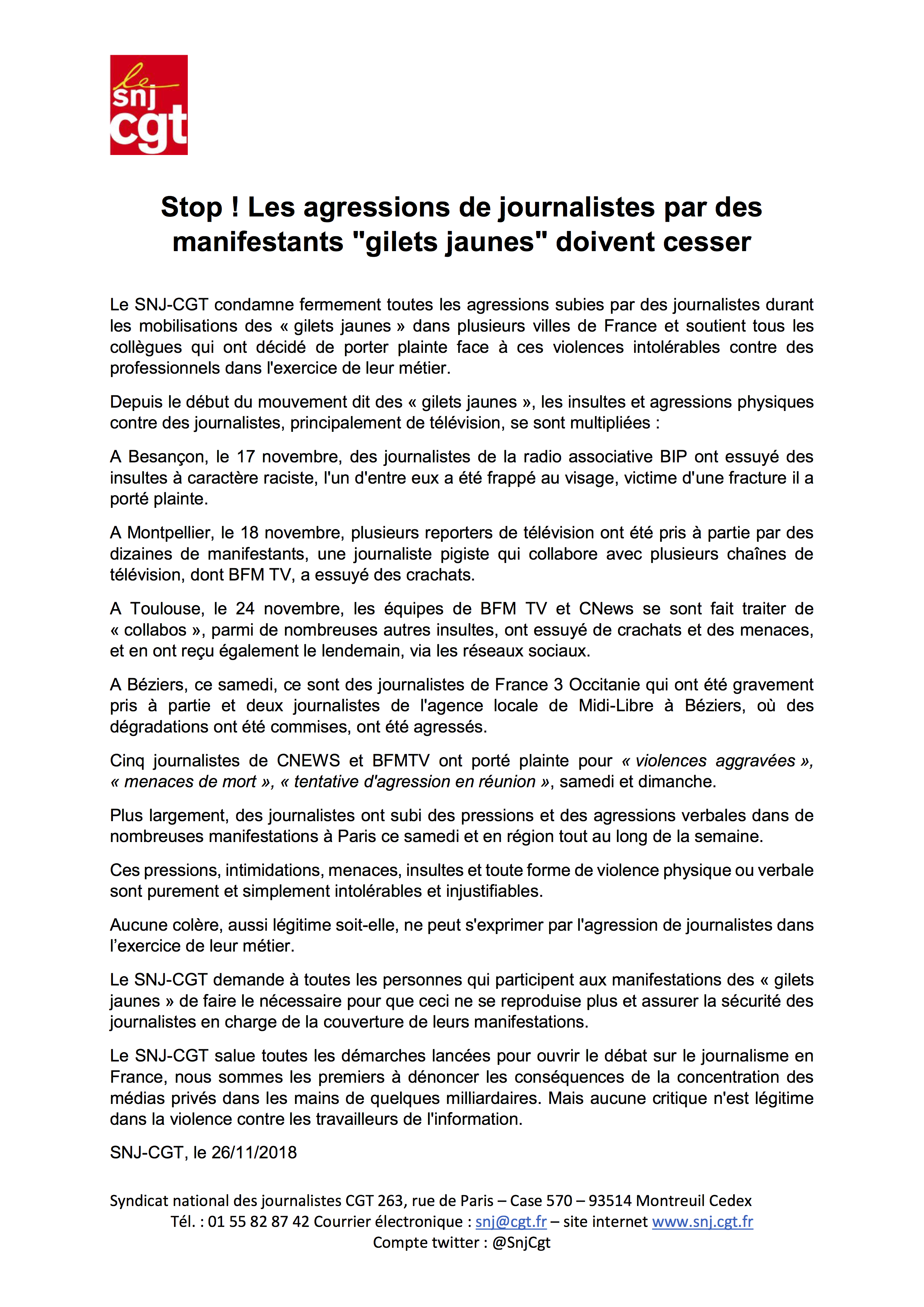 Accueil > Communiqués > SNJ CGT – Agressions de journalistes