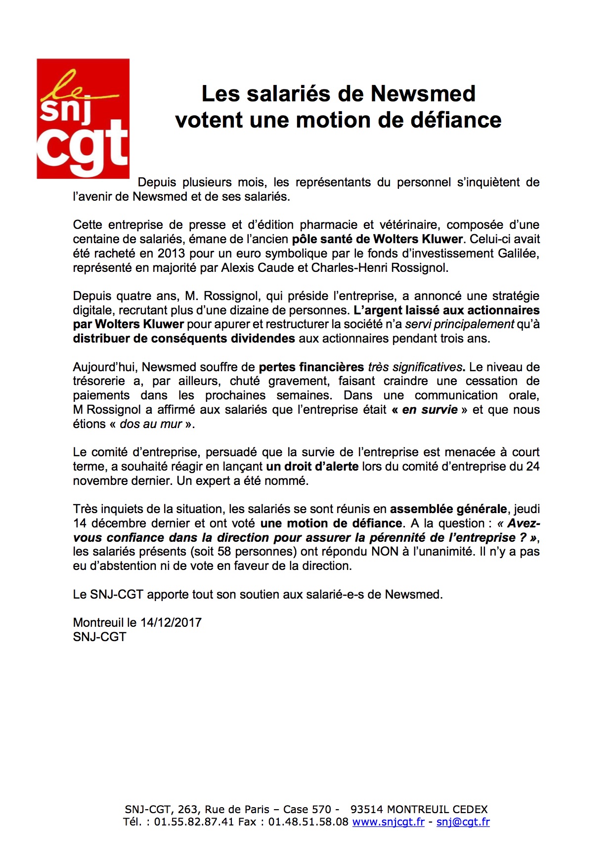 Accueil > Communiqués > [SNJ CGT::ADH] Newsmed
