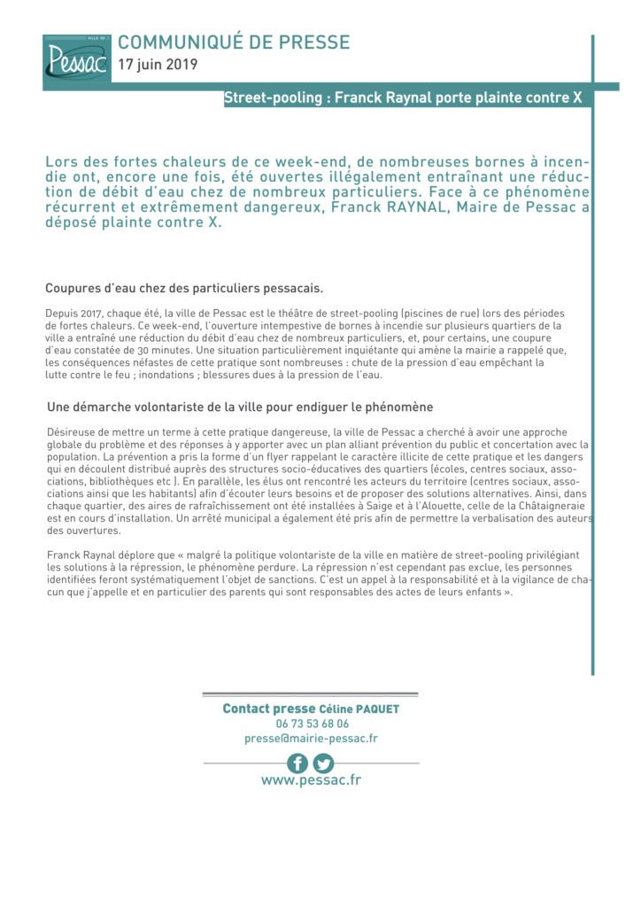 Accueil > Communiqués > Street-pooling : Franck Raynal porte plainte contre X