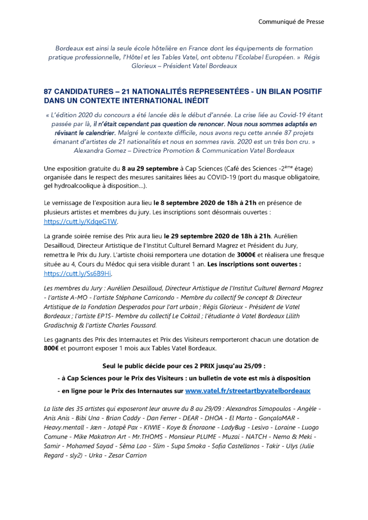 Accueil > Communiqués > Vatel Bordeaux lance sa 2ème Exposition Street Art