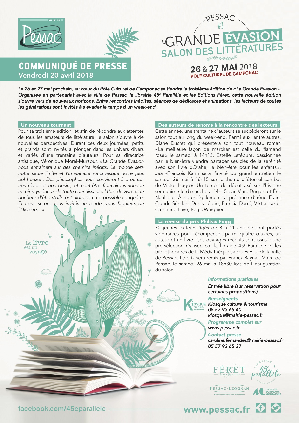 Accueil > Communiqués > VILLE DE PESSAC – Invitation conférence de presse La grande évasion, salon des littératures