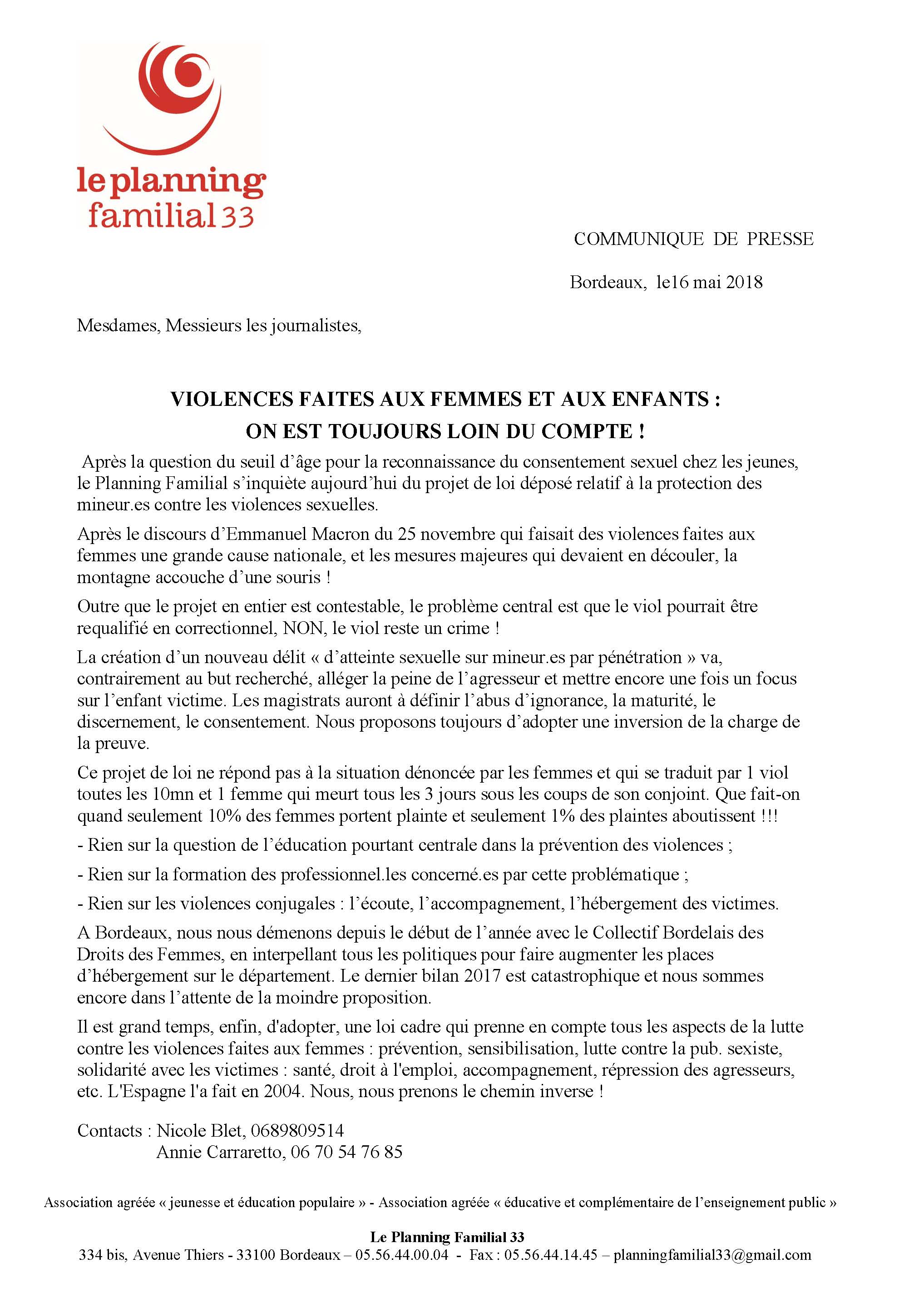 Accueil > Communiqués > Violences faites aux femmes et aux enfants – Planning familial 33