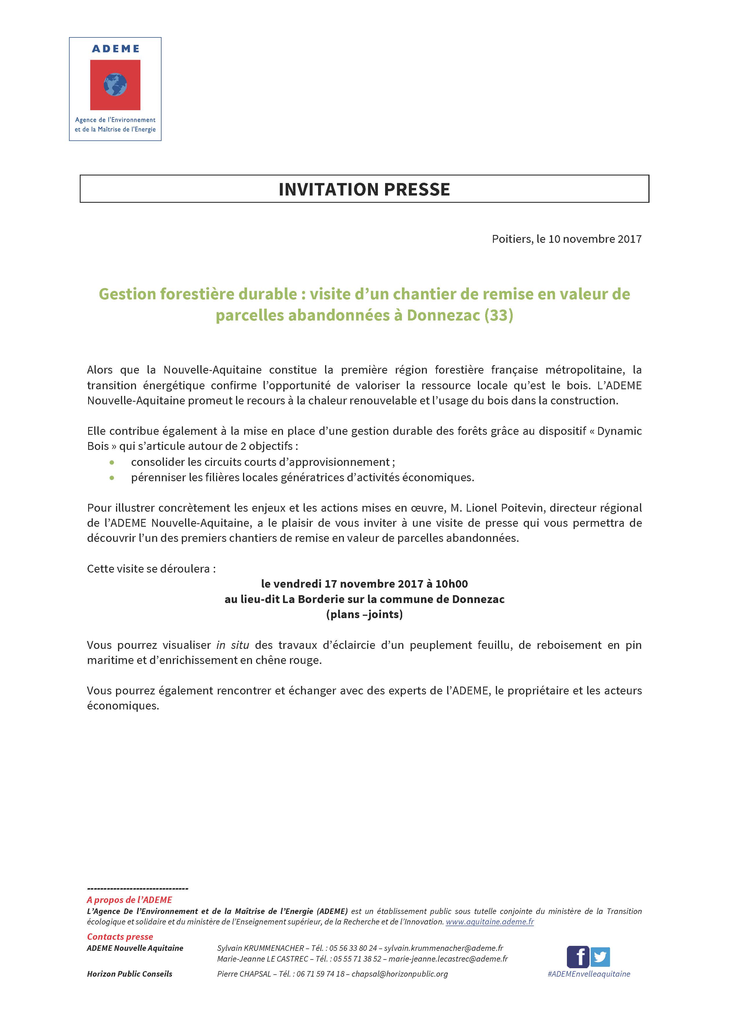 En complément de l’avis d’expert organisé par l’ADEME Nouvelle-Aquitaine le 6 novembre dernier sur la gestion forestière durable (présentation jointe), nous avons le plaisir de vous inviter à une visite de site qui vous permettra de découvrir l’un des premiers chantiers de remise en valeur de parcelles abandonnées.