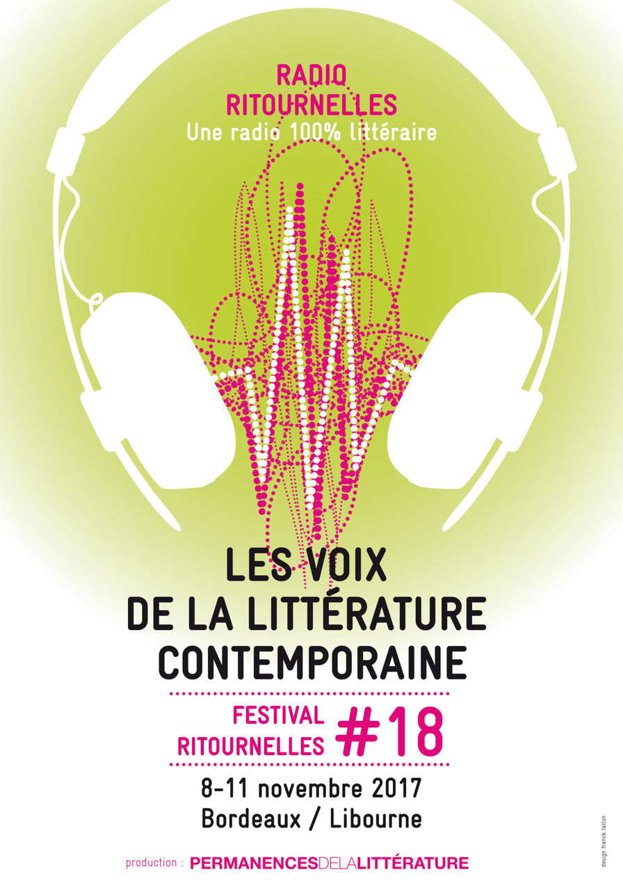 J’ai le plaisir de vous annoncer que le festival RITOURNELLES fête ses 18 ans cette année. Occasion de lancer notre toute nouvelle plateforme sonore de diffusion de la littérature contemporaine Radio Ritournelles avec 3 jours de radio littéraire non-spot sur le web et en FM.