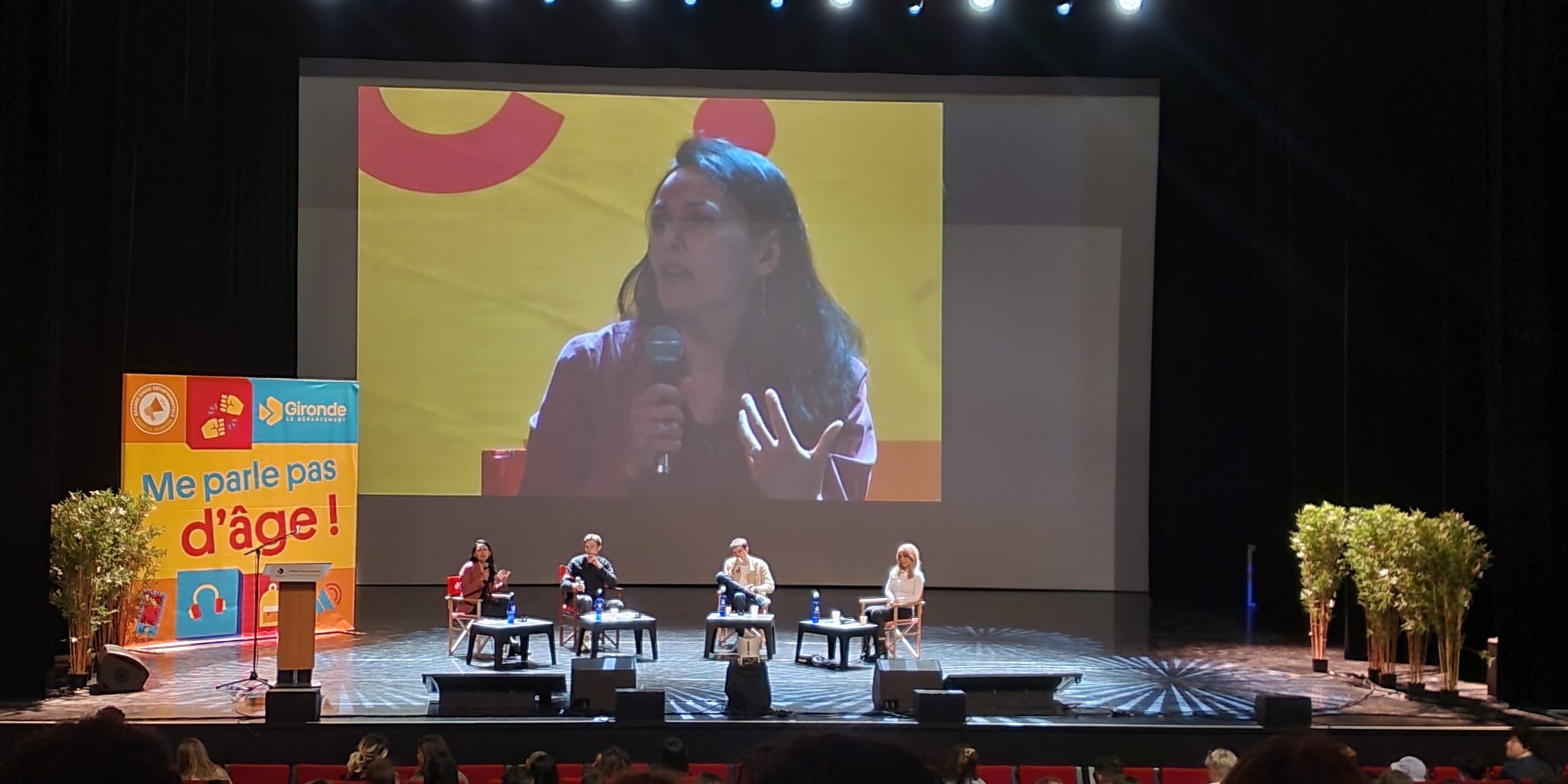 Mardi 16 mai se tenait la première journée de « Me parle pas d’âge », festival organisé sur deux jours par le Département de la Gironde, par et pour les jeunes. Un forum et des conférences sur la politique, le climat mais aussi l’information. Autour de cette table de fin de journée, animée par le fondateur du média Le Crayon Jules Stimpfling : l’agrégée de lettres et vulgarisatrice Athena Sol ; le fondateur du média HugoDécrypte, Hugo Travers ; et la chercheuse et directrice adjointe de l’IJBA, Rayya Roumanos.
