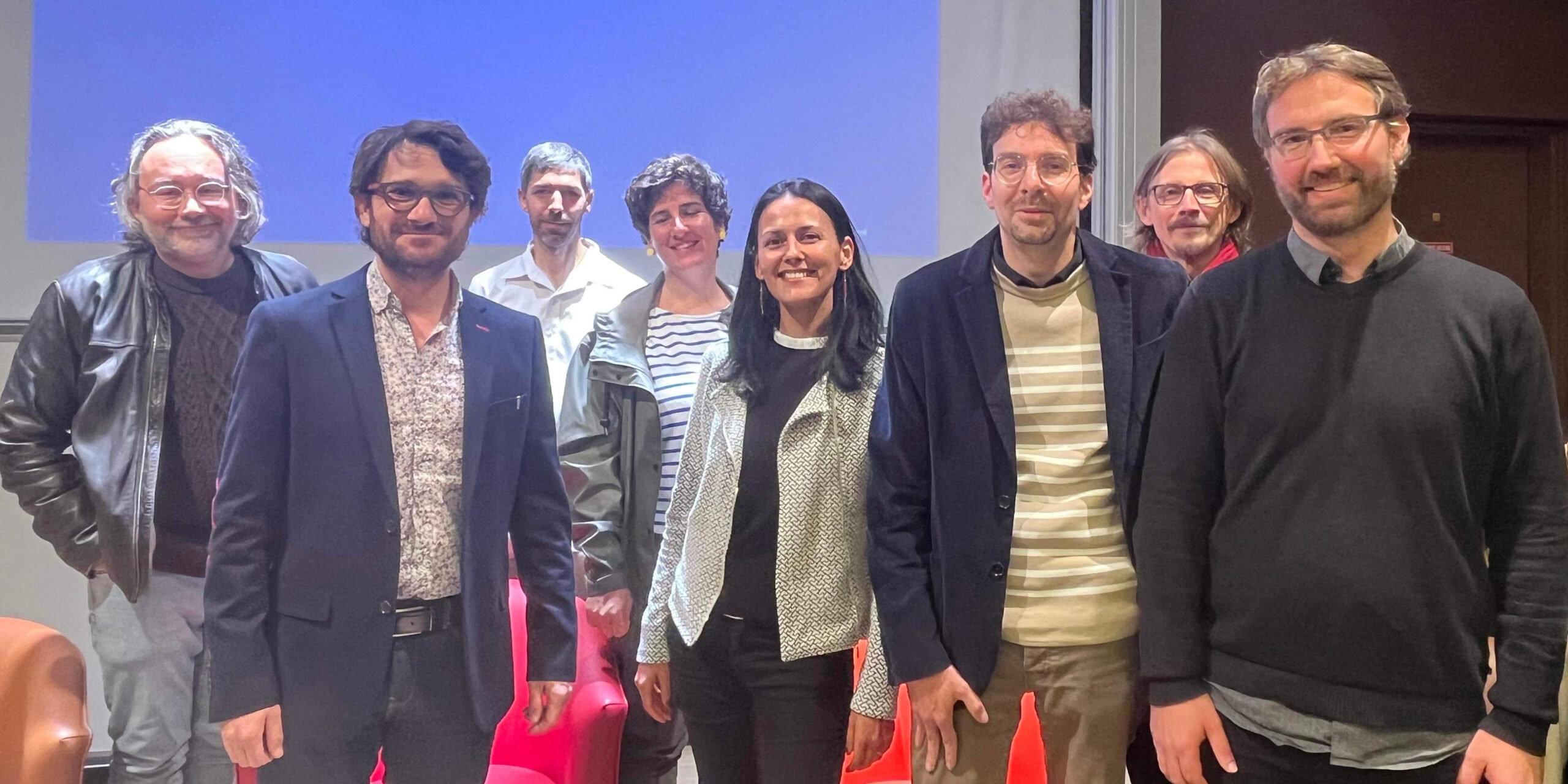 Illustration : De gauche à droite, Hubert Guillaud, Alexandre Marsat, Frédéric Sallet, Bénédicte Courret, Rayya Roumanos,Olivier Le Deuff, Arnaud Schwartz et Thibault Phillipette / Justine Roy